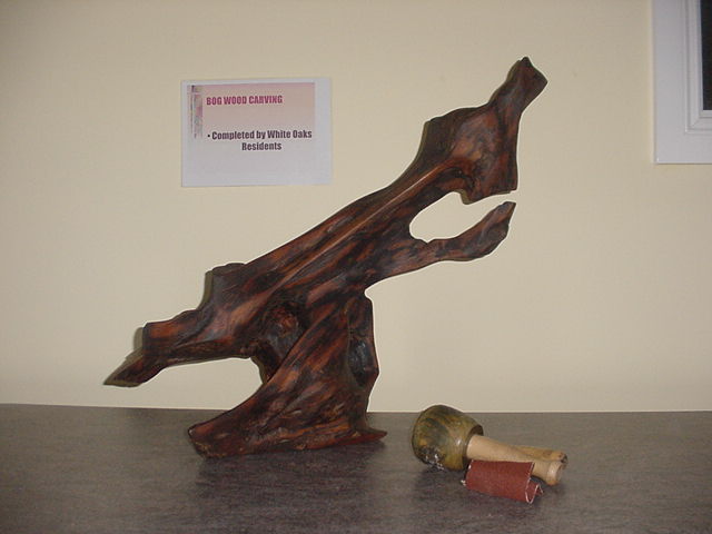 The residents here in White Oaks have devoted considerable time and energy to finding and revealing shapes from original pieces of wood which we have reclaimed from the bogs here in Inishowen.