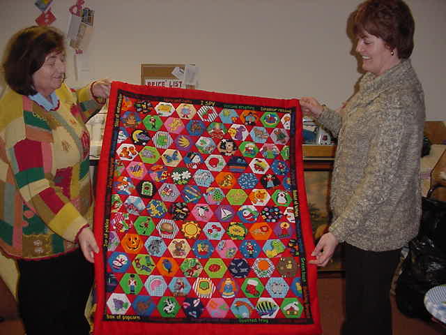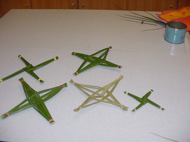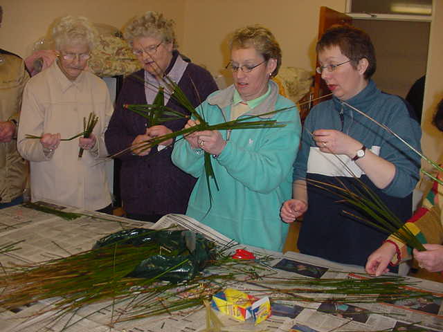 Saturday afternoon in The sewing Room gives a few ladies the opportunity to create and communicate in various ways. The pictures here were taken on the feast of St. Brigid 2004 as Christine instructed all on the making of a "Brigid's Cross".