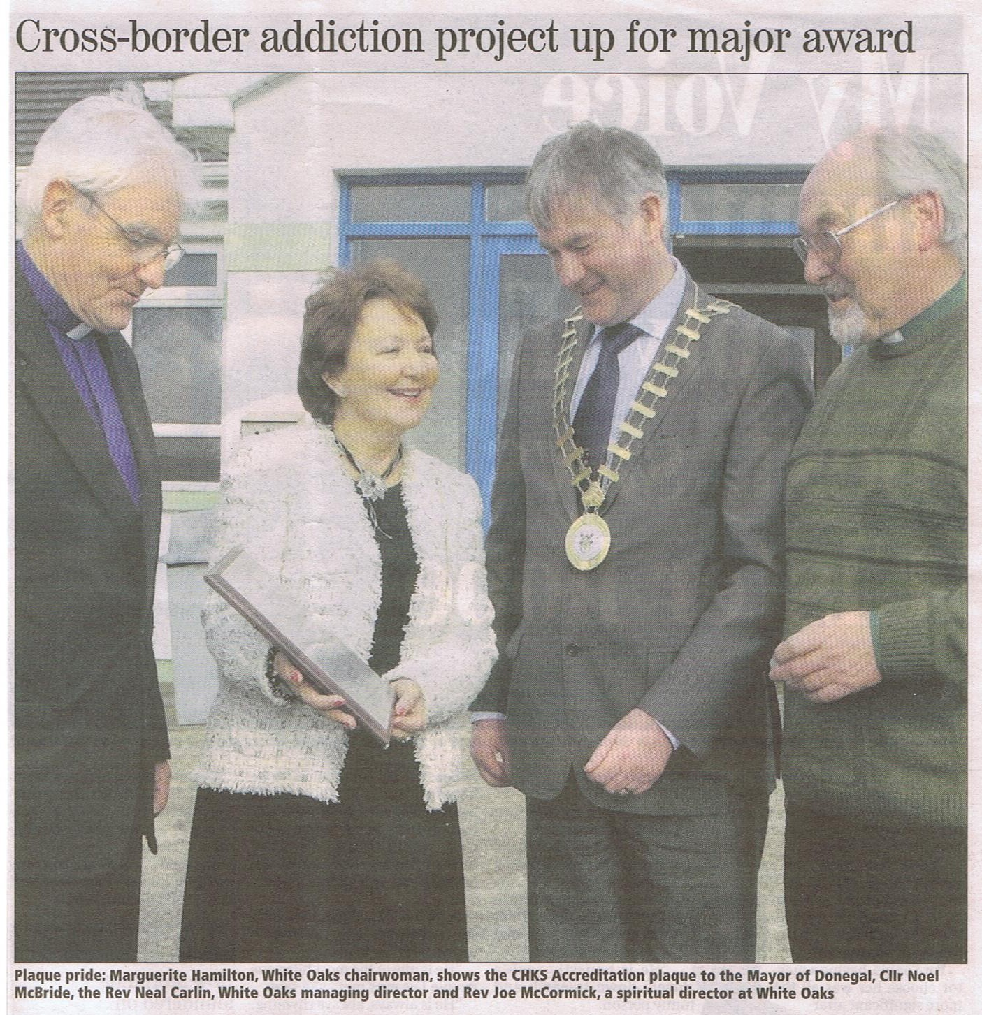 The programme Joanna attended was a Support and Information Programme for people concerned about a friend or loved one’s use of alcohol, drugs or gambling. This 2 day programme (with follow up counselling available) has been designed by the Columba Community, the Christian charitable organisation which established the White Oaks Rehabilitation Centre at Derryvane , Muff, Co Donegal. From their bases across Derry and Donegal the Community has over 30 years experience supporting people and families in crisis situations.